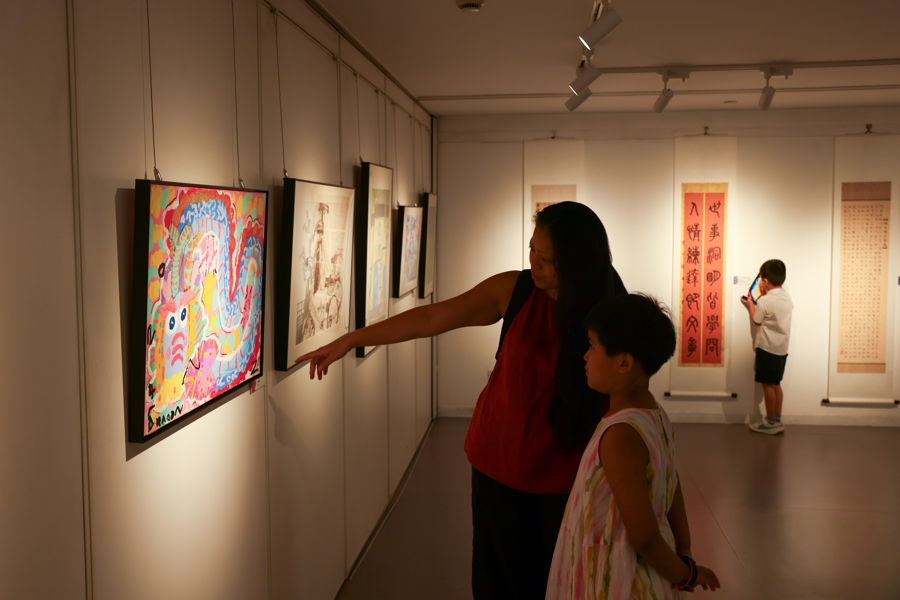 变成皮球飞向太空的人、尾巴上放烟花的龙、五颜六色的猫头鹰……9月20日,“大师从这里起步”——第八届上海少儿美术书法大赛作品展在静安区文化馆开幕,孩子们以未经雕琢的童真为笔,以天马行空的创造力为墨,将身边的生活、城市的光影、内心的世界悉数勾勒。
