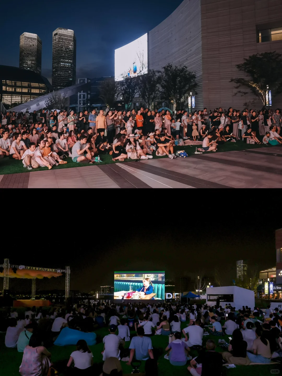 在城市地标放映露天电影,为夜间经济与文化消费打造了浪漫的落地场景。西岸梦中心保留着由工业园区改造而来的独特气质,从即日起至10月8日,每周五、周六晚在剧院广场进行双片轮播。观众能够在江风的吹拂下,享受“歌声伴电影”的惬意时刻。这里不设置固定座位,观众可自由地席地而坐,感受上海式的悠闲夜晚。为满足观众的观影需求,西岸梦中心的多家餐饮店铺在活动期间营业至24:00,部分延长至次日凌晨2:00,让观众在观影结束后还能继续享受美食。